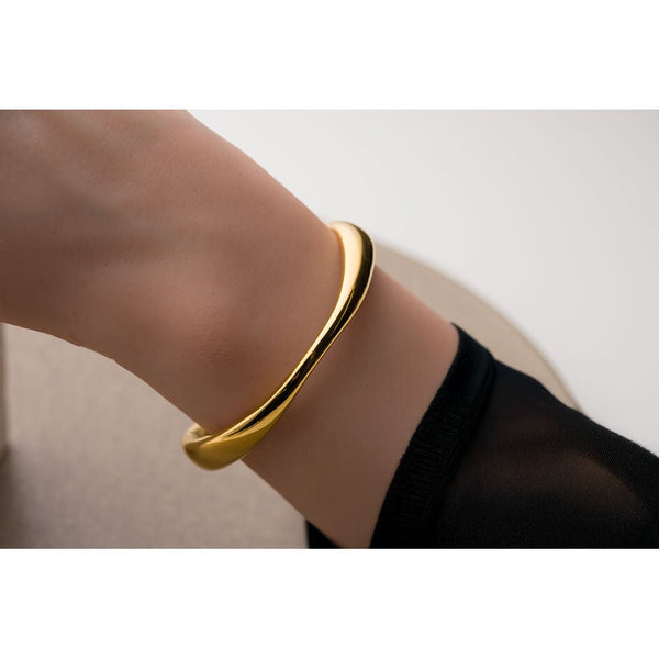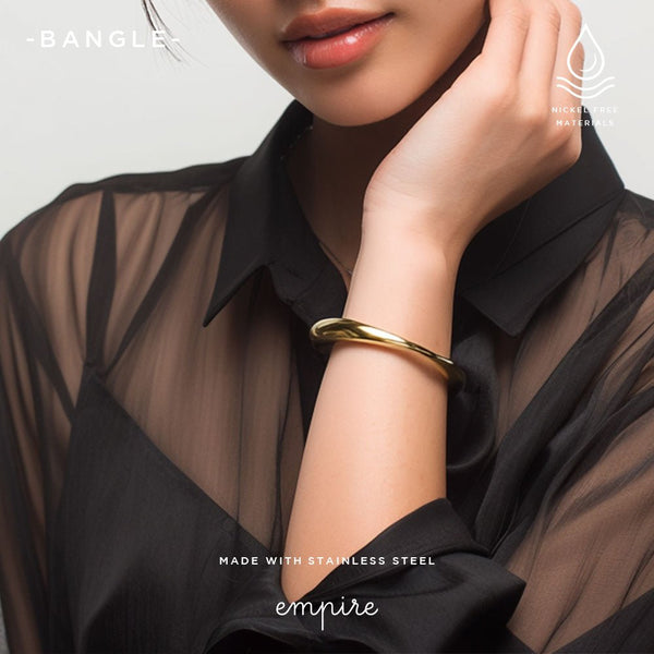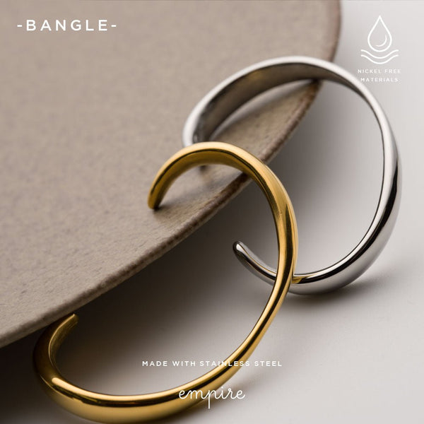 エレガントで上品な「バングル サージカルステンレス」は、金属アレルギーに対応した安心のジュエリーです。18Kコーティングが施されたこのレディースブレスレットは、ぷっくりとしたデザインが大人かわいい印象を与えます。シンプルながらも高見えするゴールドとシルバーのカラーが、どんなスタイルにもマッチ。プチプラで手に入るので、日常使いから特別な日まで幅広く活躍します。