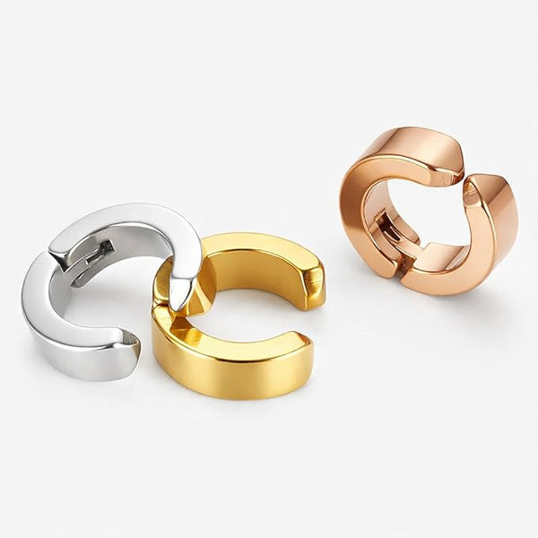 本品はご安心してご使用いただけるよう、お肌に優しく金属アレルギーが出にくい素材を使用した金属アレルギー対応のピアスですが、金属アレルギーの反応には個体差がございます。 全ての方に金属アレルギー反応がでないアレルギーフリーを保証するものではございませんので、何卒ご了承いただけますと幸いです。素材:316Lステンレススチール幅:4mm、厚さ:2.2mm、直径:13.2mm、内径:8mm挟むだけで簡単装着。痛くない!ピアス穴がいらないフェイクピアス